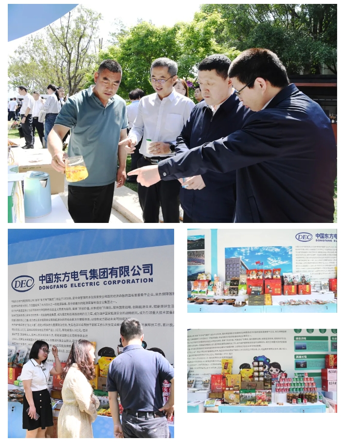 启动仪式后,与会领导和嘉宾还一同前往活动展区,详细了解各央企定点帮扶成果,并品尝帮扶特色产品。展区现场热闹非凡,在东方电气集团展位,凉山手工香肠、乌金猪腊肉火腿、彝煌茶、蜂蜜、苦荞茶、山西吉县苹果等各类特色农副产品摆满展台,各展销商通过直播和线下方式介绍产品。整个活动期间,东方电气集团将通过工会、职工食堂、供应链产业链上下游企业和职工线上线下购买,销售额预计超过1000万。